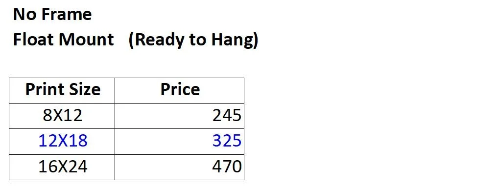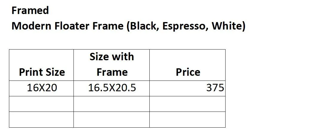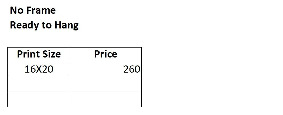 Canvas Prints - Only available for prints from paintings. Please inquire if you need a different size.